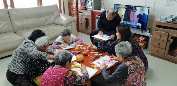 색칠하기를 하시며 재미있어 하시네요..~