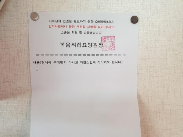 어르신의 권익보호를 위하여 "소리함"을 설치했습니다.