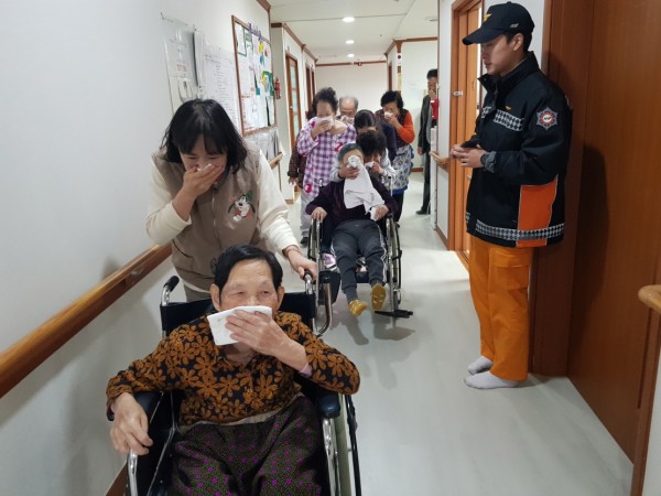 전 종사원은 물론 입소어르신께도 훈련이 필요하기에 화서119안전센터 직원의 통제하에