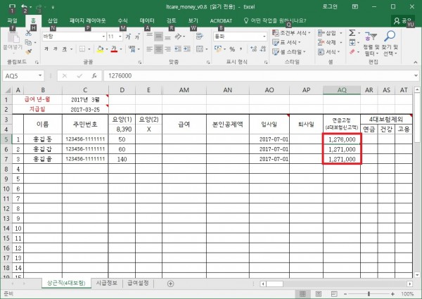 2017년도는 2017년 결정내용 기준소득월액 부분의 1,276,000 원으로 변경된걸