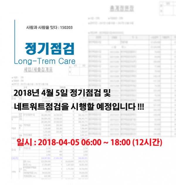 4월 5일 정기점검 및 네트워크점검이 있을 예정입니다.