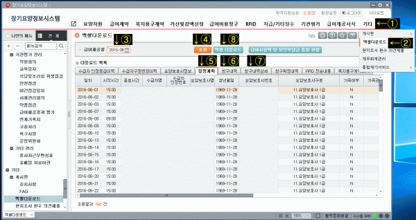 ⑧번 엑셀 다운로드를 눌러 다운로드 하시면 됩니다.