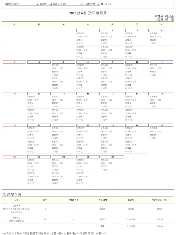 급여관련하여 일정을 만들기 어려운 분들을 위해서 노인장기요양보험 공단의 엑셀파일을 받아