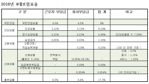 2. 2018年 건강보험 요율 인상 반영