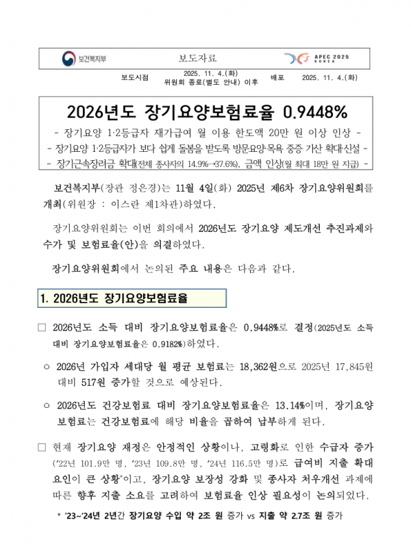 2026년 장기요양보험율 (장기요양수가) & 인건비 지출비율