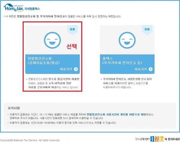 1. 사이트접속후 "연말정산간소화 공제자료 조회/발급" 선택하세요