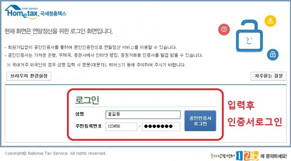 2. 이름과 주민번호를 등록후 본인 인증서로 로그인을 합니다.​