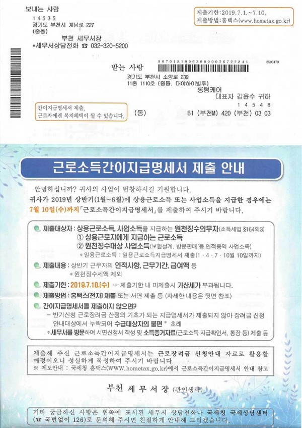 근로장여금 반기지급 제도로 인한 근로소득간이지급명세서를 제출해야 합니다.