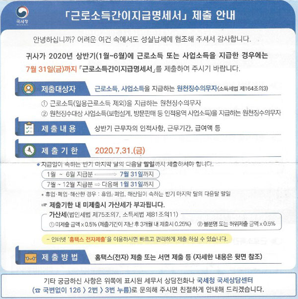근로소득간이지급명세서(상반기) 제출예정일 :: 7월 21일