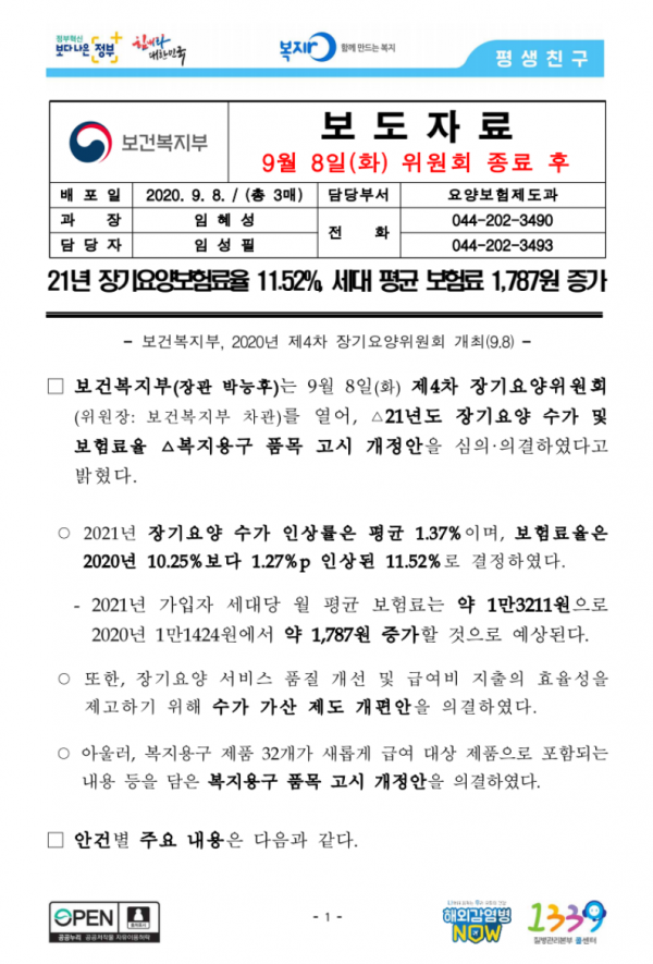 2021년 장기요양보험율 (장기요양수가)
