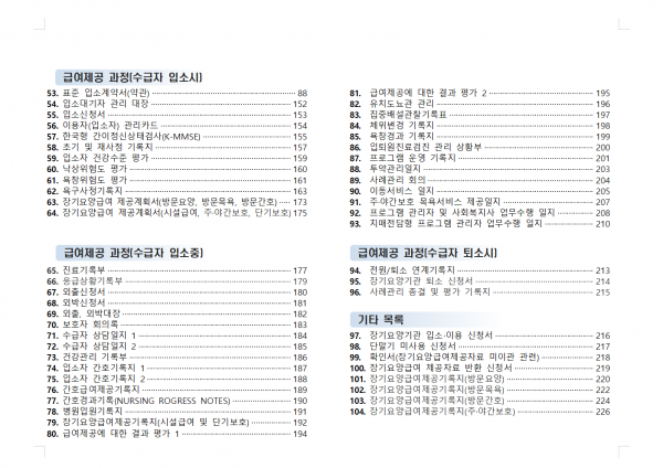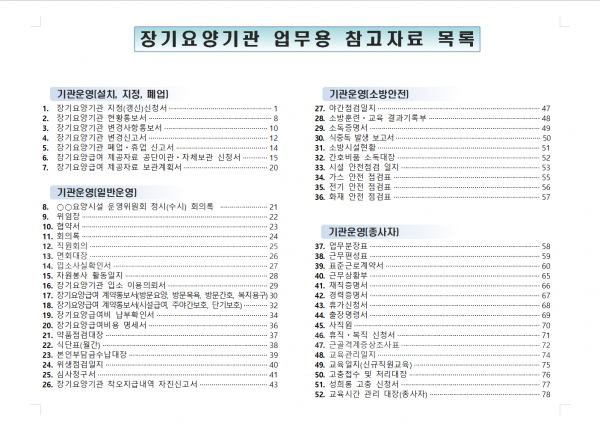- 장기요양기관 업무 특성에 적합한 운영 서식자료집 마련 필요