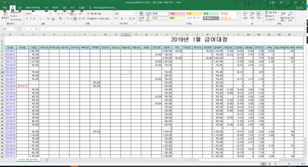 업데이트 하면서 너무 초라한 급여대장에 셀서식을 넣어서