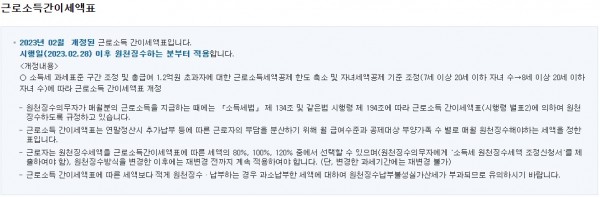 급여대장 2023 년도 근로소득간이세액표 적용반영 안내 (2023 년도 3월분부터적용)